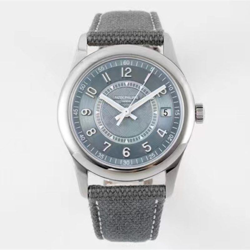 ZF厂全新推出升级V2版 PP百达翡丽6007A-001Calatrava(普朗莱乌特制表大楼纪念款).V2版颜色经过数次调配,终于显示了PP独家的灰蓝色(既不灰,也不蓝),100%还原百达翡丽的“蓝色贵族”.腕表40MM采用不锈钢材质的表壳以及宽阔的弧形表圈设计,线条优雅细节到位,十分醒目。充满动感活力的表盘结构,具有“碳型”菱格纹理和LOGO的机镂圆盘,三角形标记的轨道式刻度环,压嵌式阿拉伯立体字块,整体的灰蓝色沉稳典雅。蓝宝石水晶透盖上刻有Calatrava十字星图案和“New Manufacture2019”字样。搭载了兄弟厂PPF独家定制的第三代Cal.324SC一体机芯,配备硅游丝。动力储存 45 小时。表带白色缝线的小牛皮也独具特色,经压花处理,呈现出纺织面料纹理,有强烈的运动感,和表盘中心的结构相呼应,呈现出无与伦比的动感形象。ZF力求完美,再次惊艳!